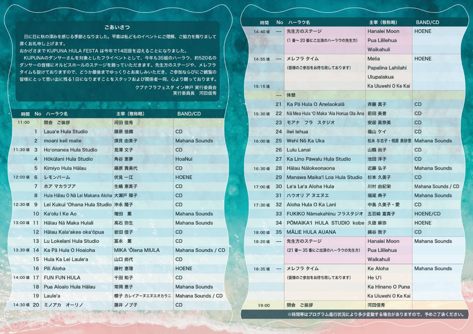 | 主催 | Kupuna Hula Festa in Kobe 実行委員会 |